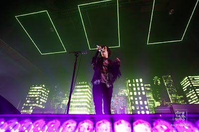 Klar, die großen Hits wie „The Sound“ und „Chocolate“ machen Laune und versprühen auch live unglaublich viel Spaß und Lebensfreude. Es ist die Musik, die man hören möchte, wenn man an einem lauen Sommerabend mit seinen Freunden zusammensitzt und genau dieses Gefühl sieht man in den Reaktionen der Zuschauer an diesem Abend. Es wird viel getanzt und mitgesungen im Zenith und ab und an hört man auch begeistertes Kreischen. Vielleicht liegt der Schlüssel zur allgemeinen Begeistertung auch ein bisschen am Sänger von The 1975, der charmant zurückhaltend durch den Abend führt, einen Song seiner verflossenen Liebe widmet und sich dabei auch noch entschuldigt, dass er sich „Wie ein Arschloch“ benommen habe. Worte, die bei dem vermehrt weiblichen Publikum ziemlich gut ankommen und dem braunhaarigen Lockenkopf sicherlich einige Herzen zufliegen lassen. Richtig begeistert zeigt sich Healy aber von der Tatsache, dass das Konzert im Münchener Zenith das größte in Deutschland in der bisherigen Bandgeschichte war. Das Konzert war aufgrund großer Nachfrage von der Tonhalle ins Zenith hochverlegt worden, aber leider blieb die neue Halle nur halbgefüllt. Eine pickepacke volle Tonhalle hätte der Band sicherlich besser gestanden, aber die quietschbunte Bühnenshow, die in allen möglichen Neonfarben leuchtete, zeigt, dass The 1975 mit einer Halle dieser Größe durchaus umzugehen wissen. Sie wirkten auf der weit größeren Bühne keineswegs verloren und etwas positives hatte die Verlegung ja: Es blieb für jeden mehr Platz zum Tanzen.